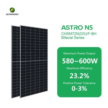 Toptan GÜNEŞ PANELI fiyat Astro N5 serisi 580-600 Watt 182*182mm çift cam ile Bifacial n-tipi GÜNEŞ PANELI